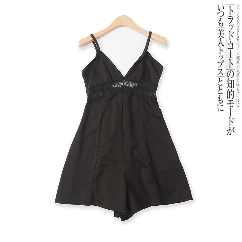 NT夏季薄款丝质性感睡衣女士V领蕾丝吊带短裤连体衣家居服可外穿