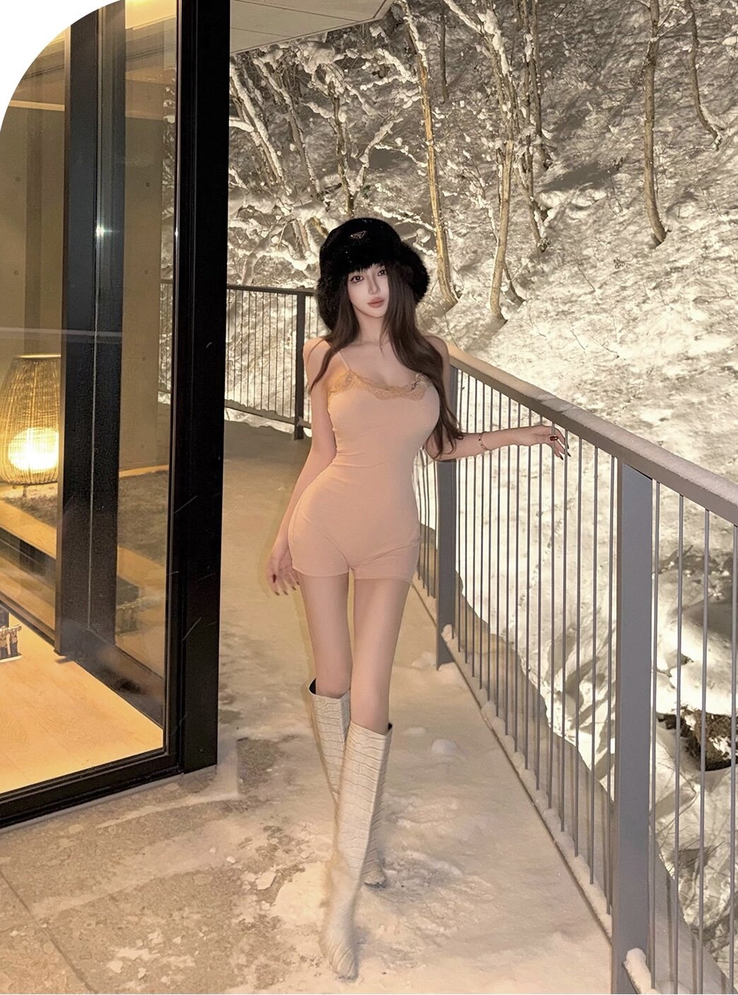 YoungGirlDay纯欲辣妹性感修身显瘦肩带可调节蕾丝边吊带连体短裤