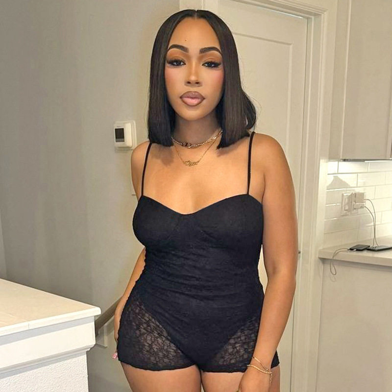d25rp087欧美夏季新款性感蕾丝拼接镂空无袖紧身连体短裤
