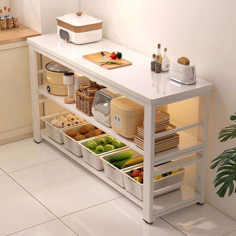 岩板厨房置物架落地多层微波炉收纳窄架切菜桌工作台多功能餐边柜