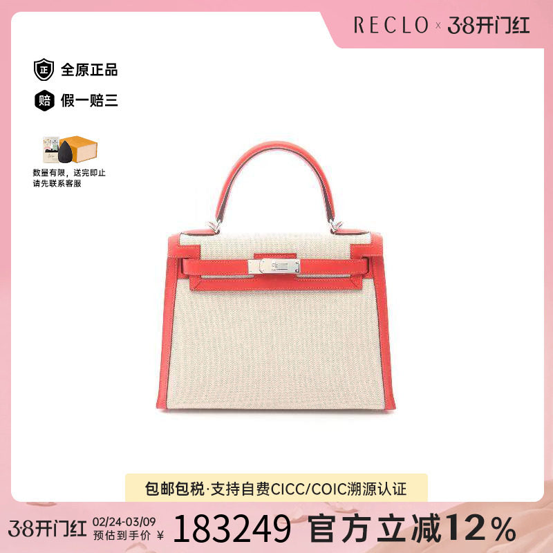 中古Hermes爱马仕女包A级95新Kelly 25凯利 25牛皮手提包红色