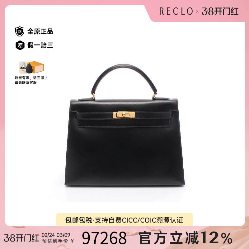 中古Hermes爱马仕女包A级95新Kelly28凯利28牛皮手提包黑色RECLO