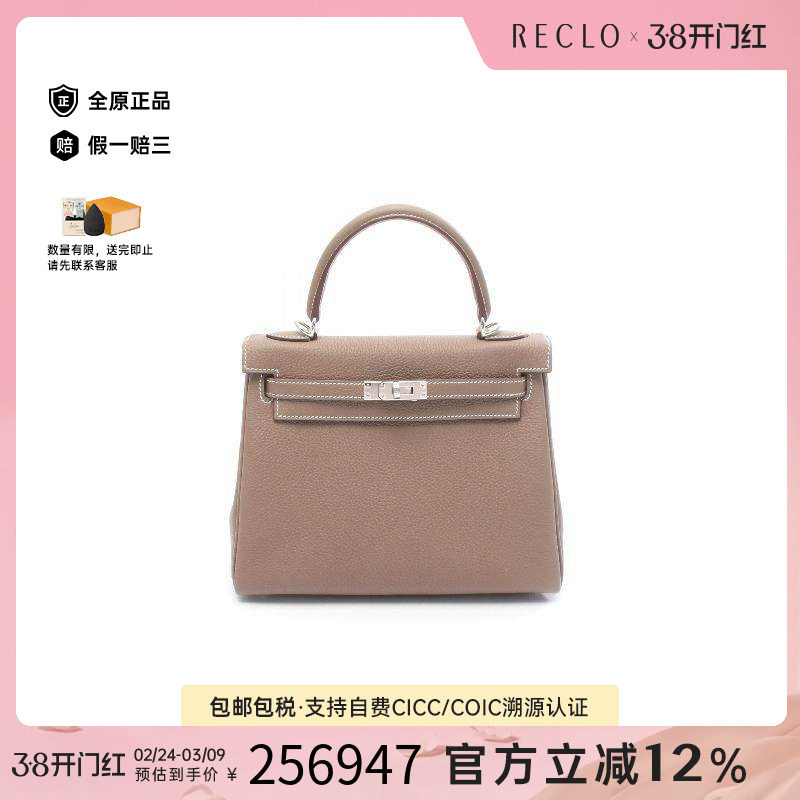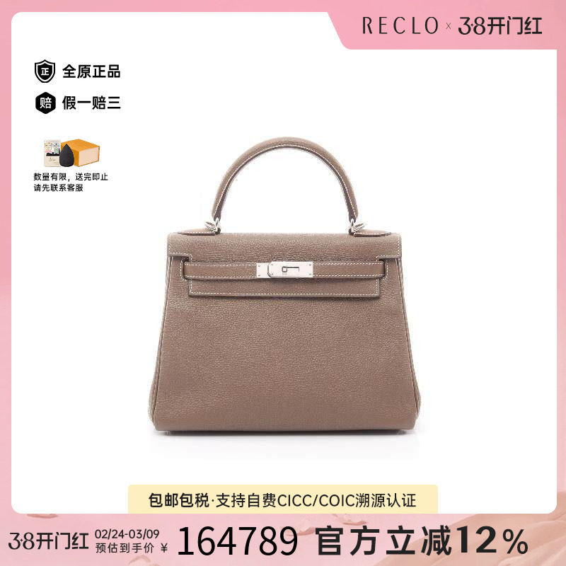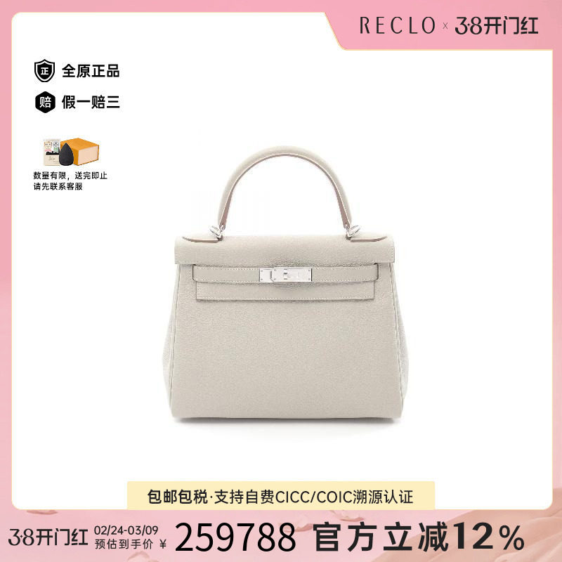 中古Hermes爱马仕女包A级95新Kelly28凯利28牛皮手提包灰色RECLO