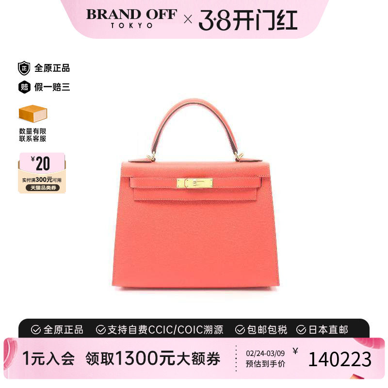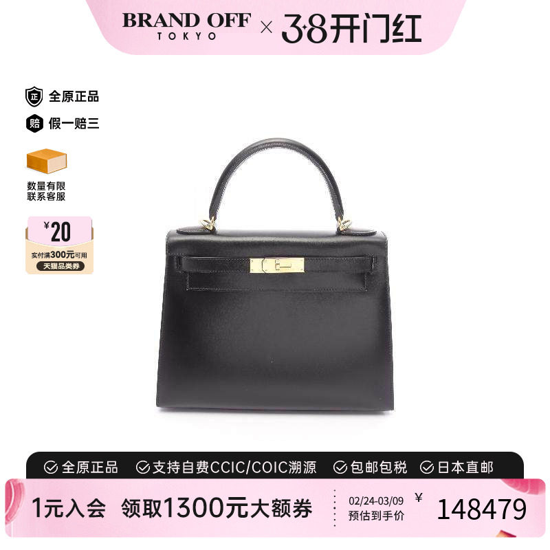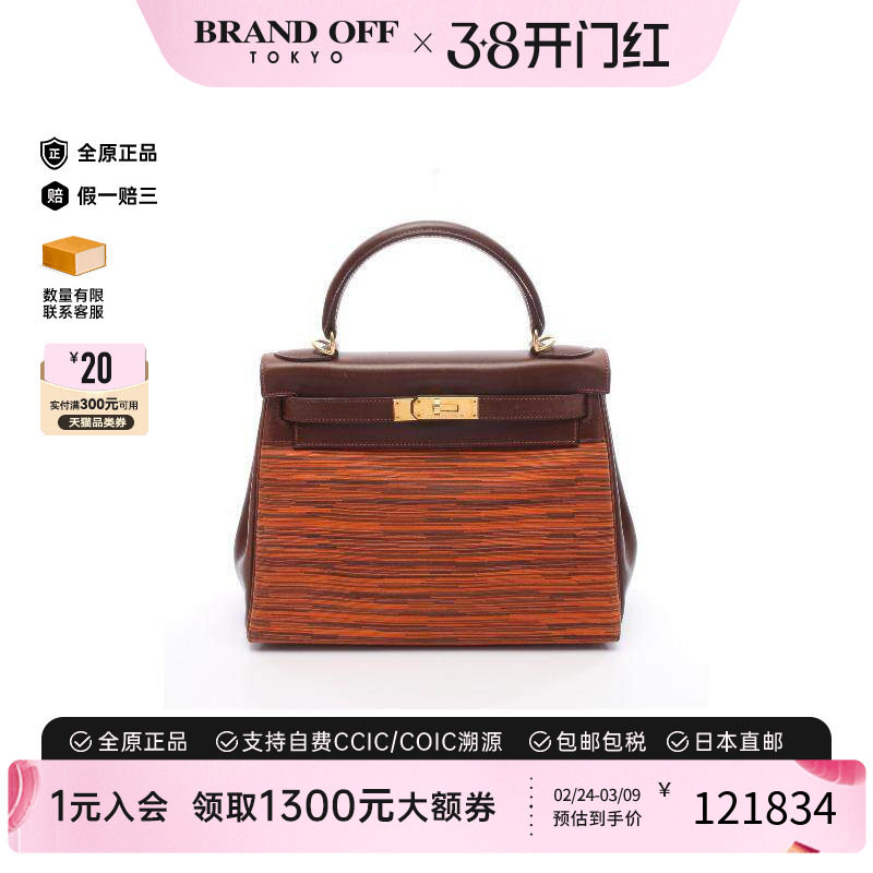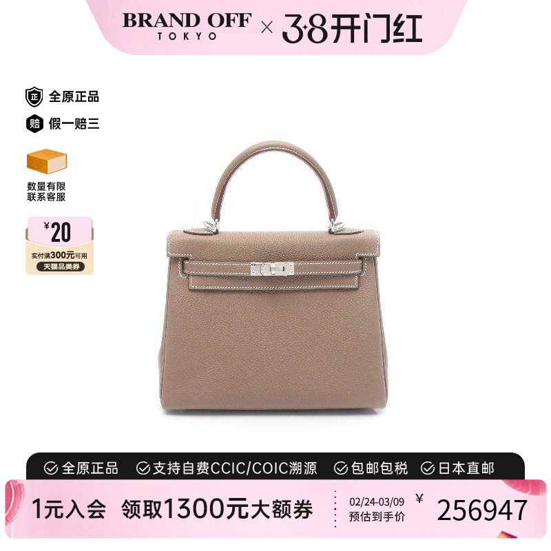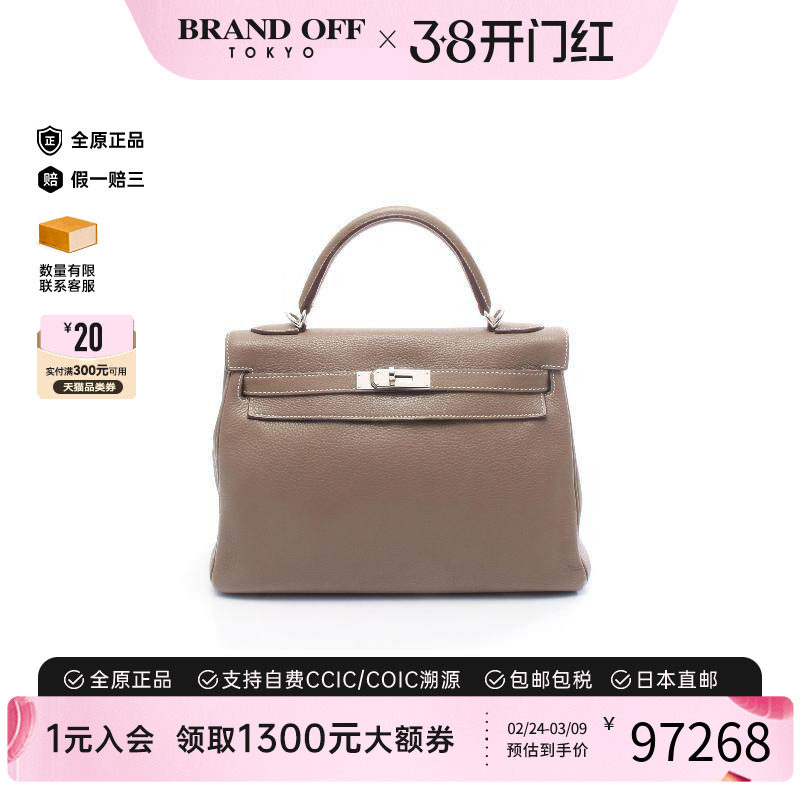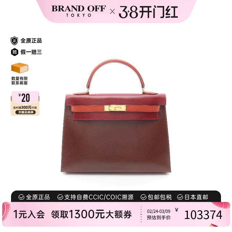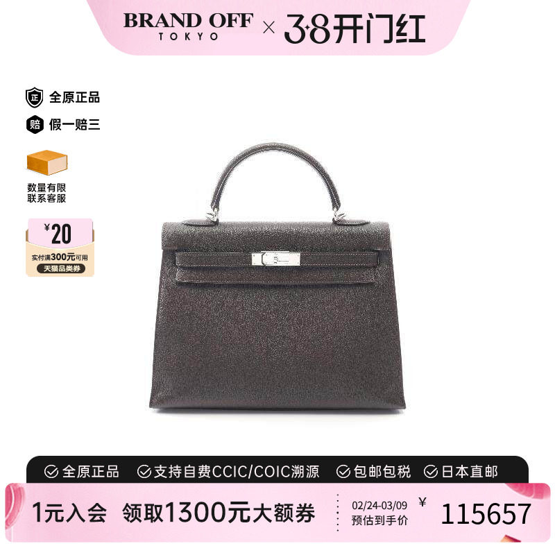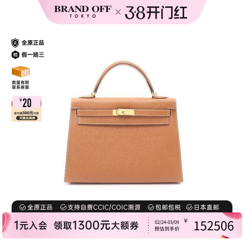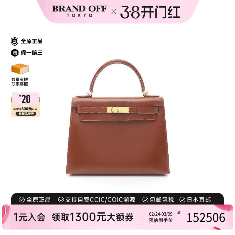 中古Hermes爱马仕女包B级9新Kelly32凯利32牛皮手提包棕色