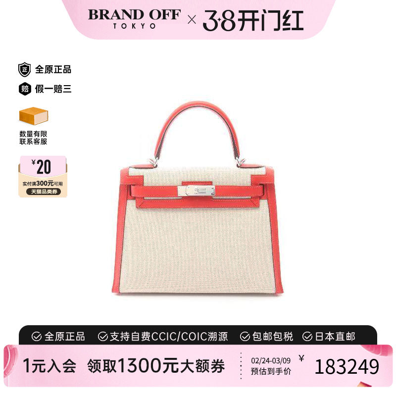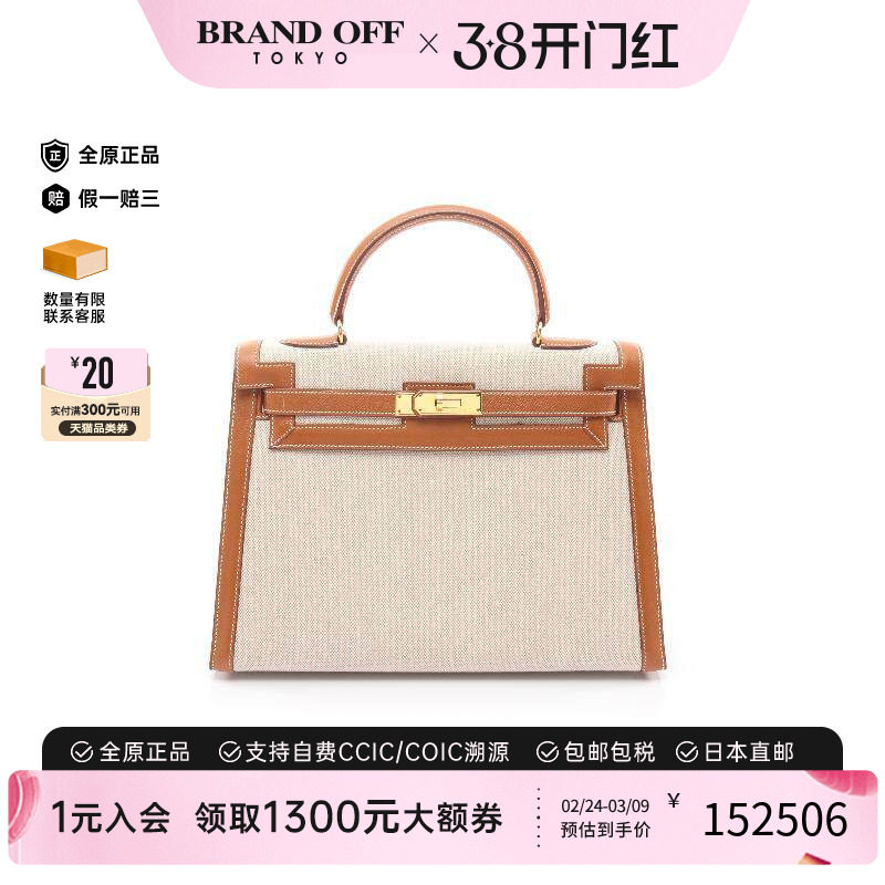 中古Hermes爱马仕女包A级95新Kelly32凯利32帆布手提包浅褐色