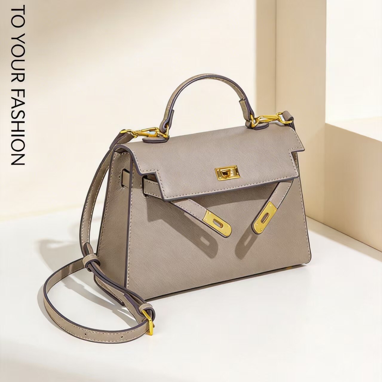 新品真皮女包小众韩版百搭时尚头层牛皮锁扣女手提单肩凯利包气质
