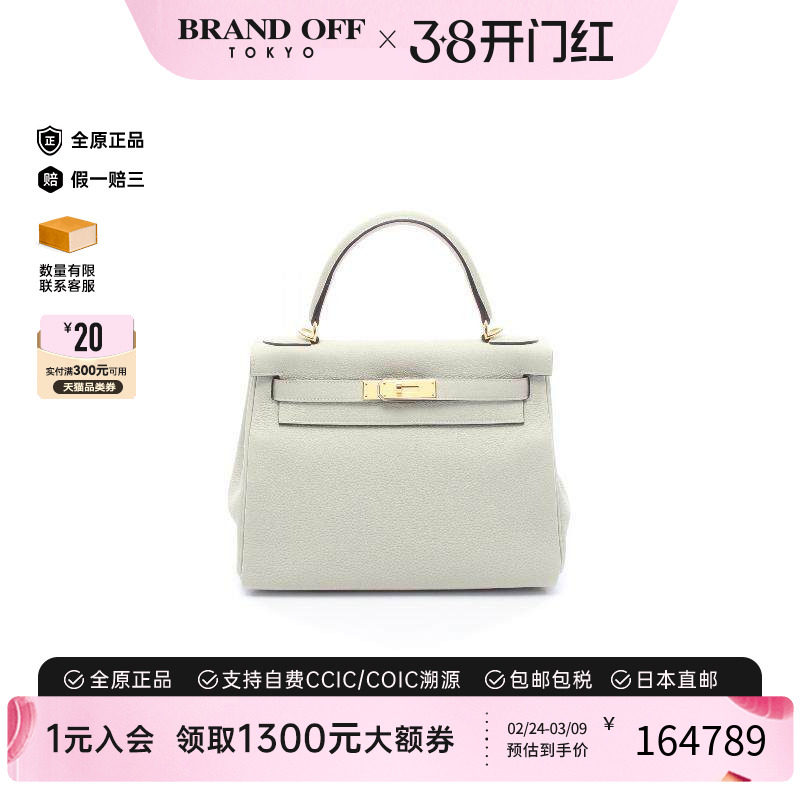 中古Hermes爱马仕女包A级95新Kelly32凯利32牛皮手提包灰色