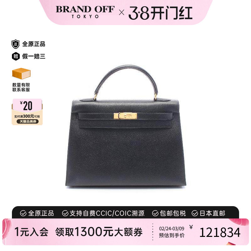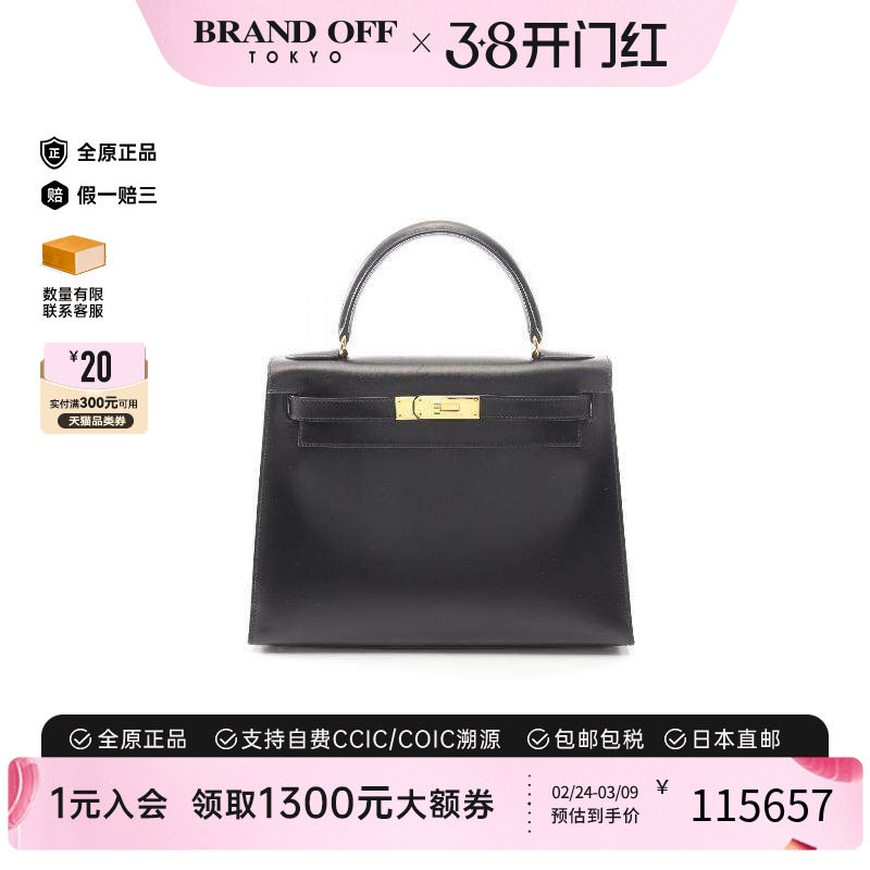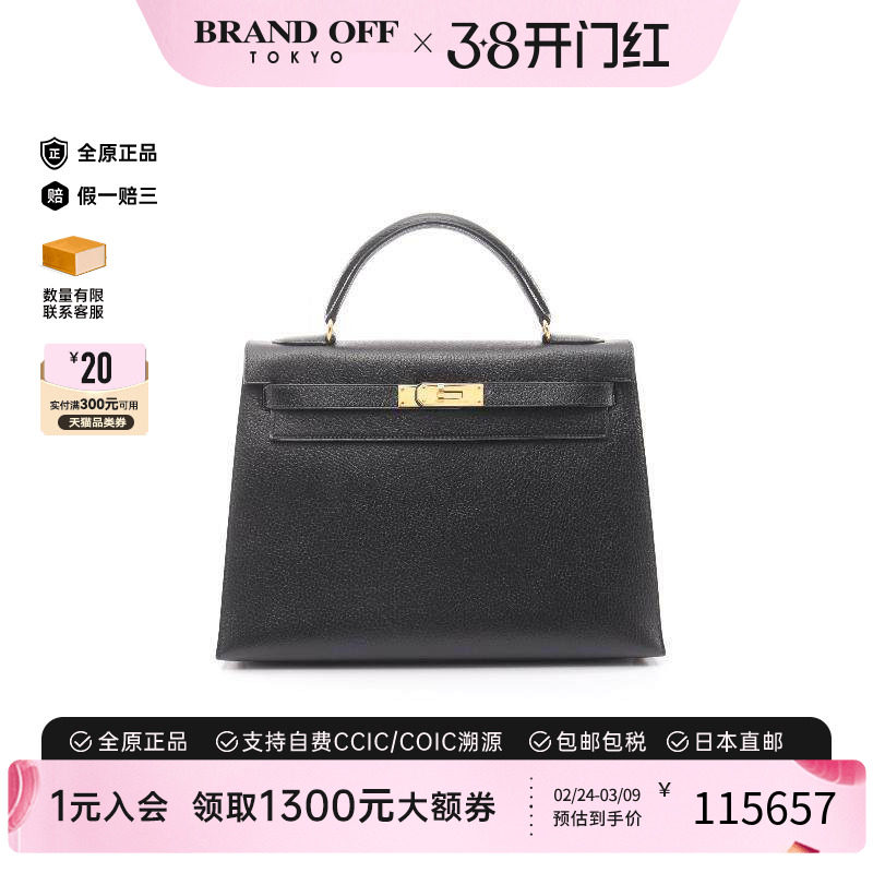 中古Hermes爱马仕女包A级95新Kelly32凯利32牛皮手提包黑色