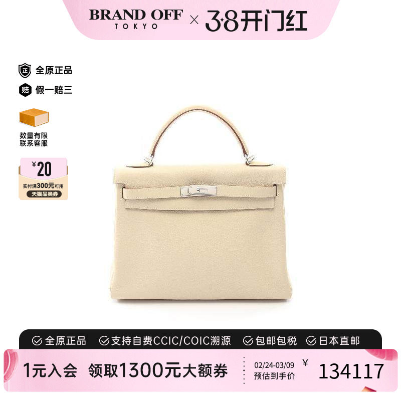 中古Hermes爱马仕女包A级95新Kelly32凯利32牛皮手提包浅褐色