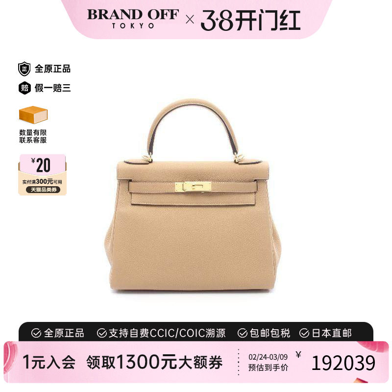 中古Hermes爱马仕女包A级95新Kelly28凯利28牛皮手提包浅褐色正品