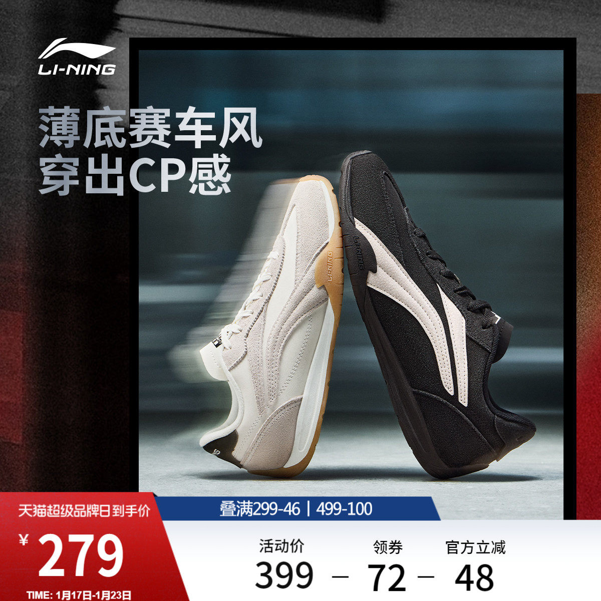 李宁菲林Turbo V2丨休闲鞋男女冬季复古德训轻便薄底赛车运动鞋