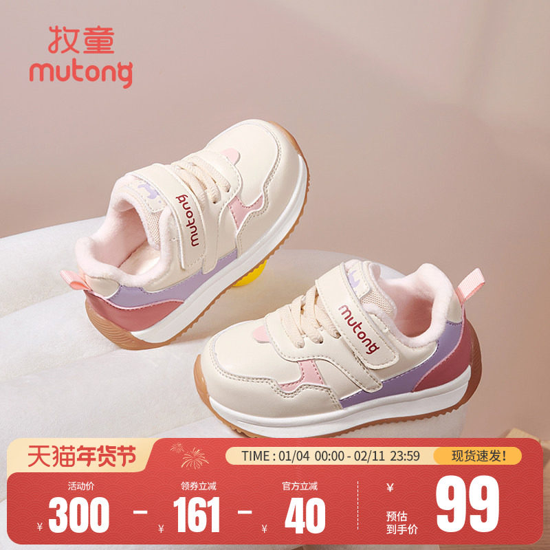牧童女童运动鞋2025秋冬新款轻便减震儿童休闲鞋加绒保暖男童鞋子