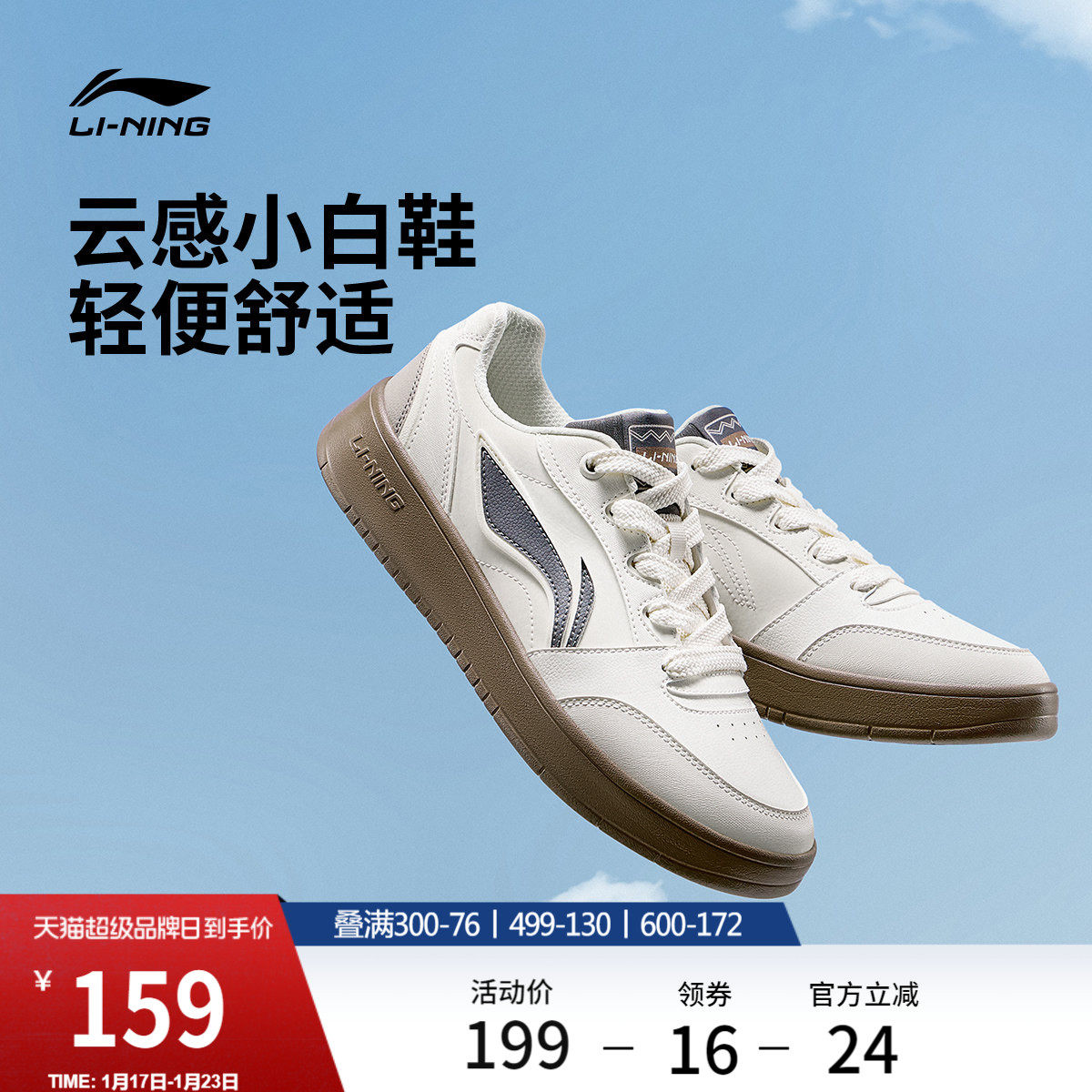 李宁月璃丨板鞋男鞋春季新款小白鞋复古休闲鞋轻便软底运动鞋子男