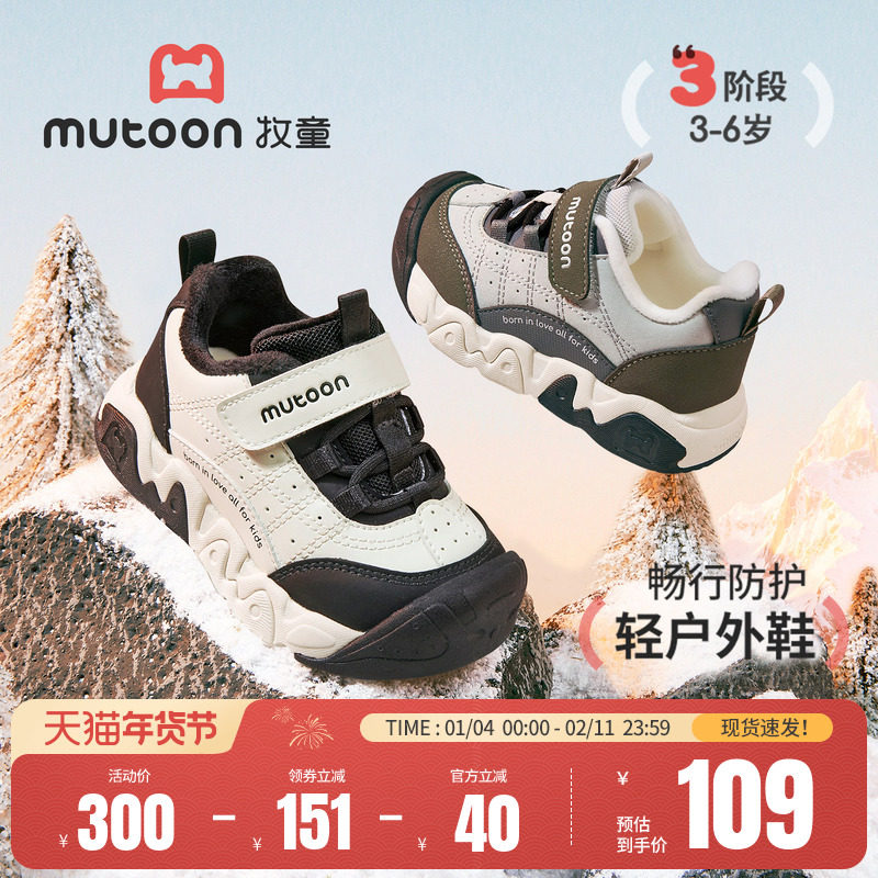 牧童童鞋男童户外运动鞋2025冬季新款幼童轻便女童加绒保暖二棉鞋