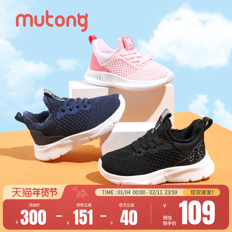 牧童儿童体考鞋秋冬男童加绒保暖跳绳鞋轻便减震女童鞋机洗飞织鞋