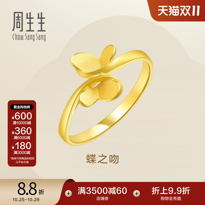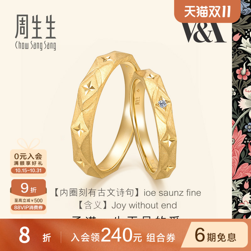 周生生18K黄色黄金V&A博物馆联名情侣对戒结婚对戒组合男女款戒指