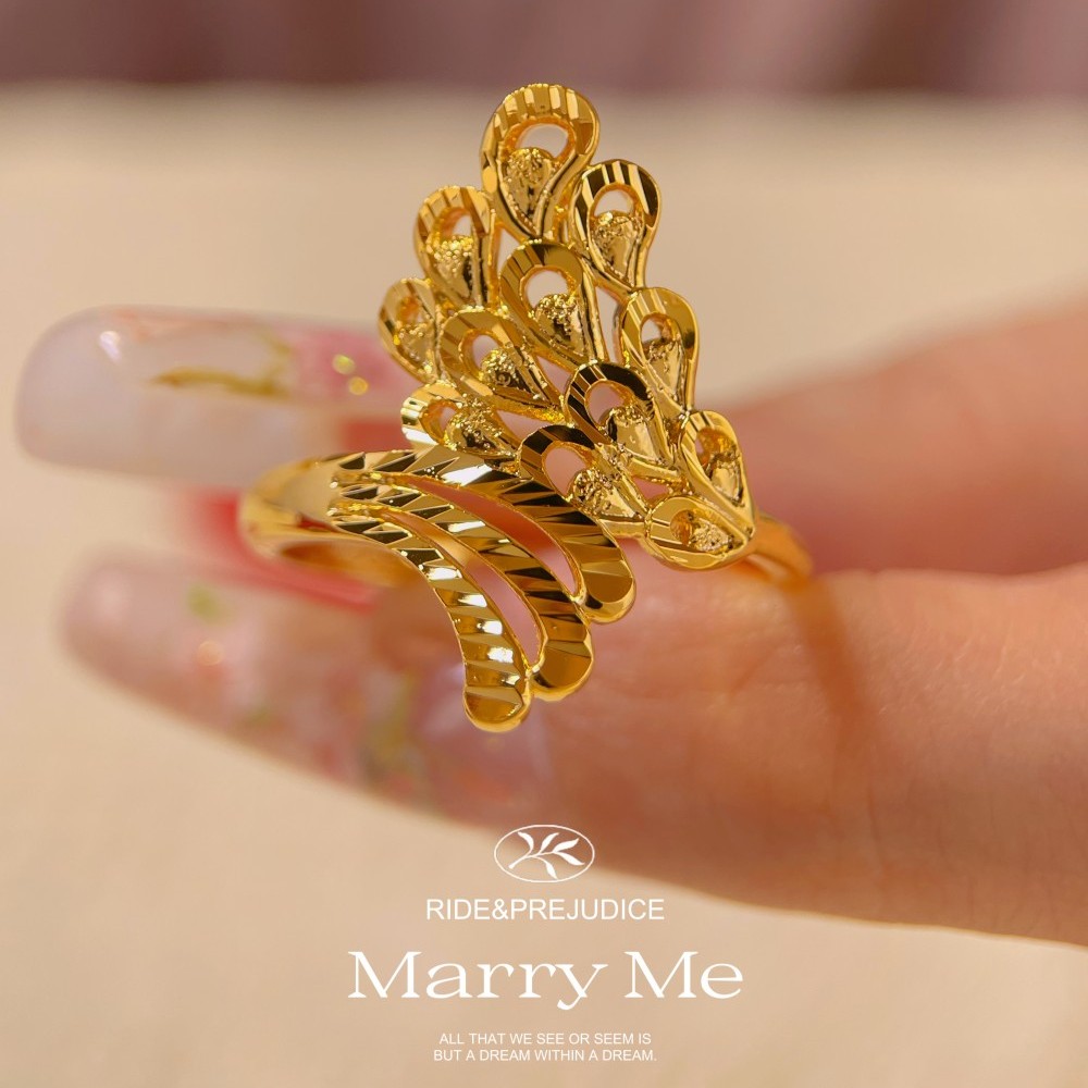 妙曦古法沙金凤凰戒指女新娘结婚三金轻奢仿真黄金宫廷风摄影道具