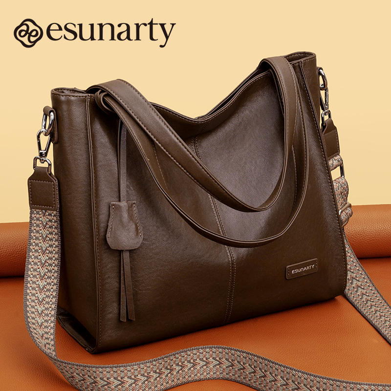 SHEPOK真皮女包2025新款软皮通勤高级感大容量牛皮单肩斜挎托特包