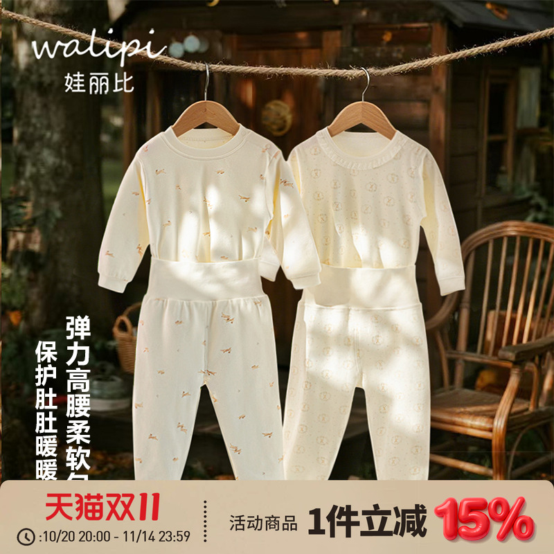 婧麒宝宝秋衣套装纯棉高腰护肚秋裤儿童分体衣服男婴儿保暖内衣裤