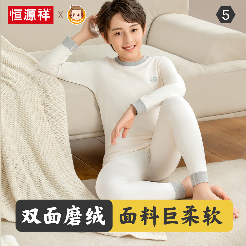 恒源祥男童保暖内衣套装男孩中大童青少年加厚秋冬睡衣儿童秋衣裤