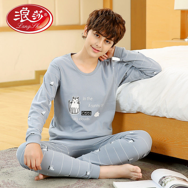 浪莎青少年男童春秋内衣睡衣纯棉秋冬保暖儿童秋衣裤保暖内衣套装