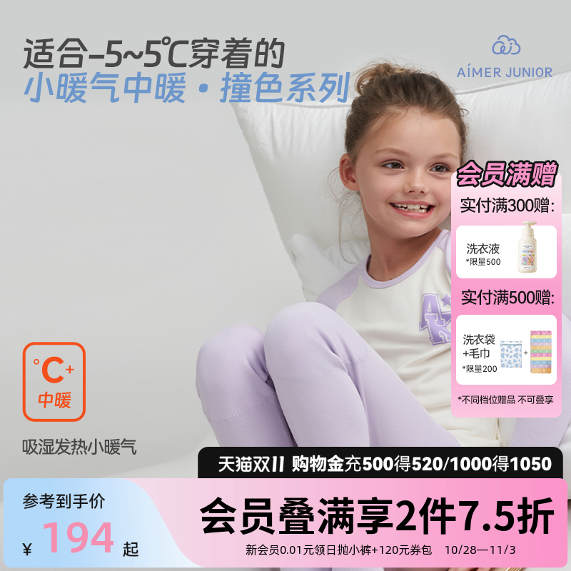 爱慕少女保暖内衣套装吸湿发热小暖气女孩中暖内搭打底儿童秋衣裤