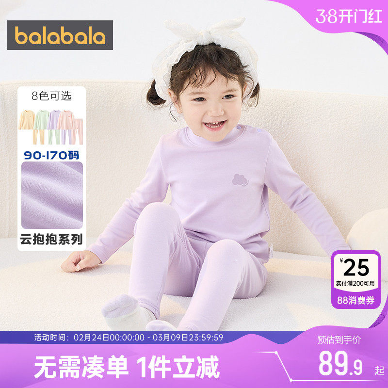 巴拉巴拉女童内衣套装婴儿宝宝保暖秋衣秋裤秋冬款儿童睡衣加厚小