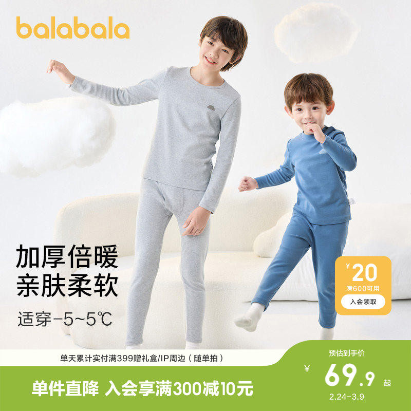 巴拉巴拉男童保暖内衣套装春秋加厚儿童秋衣秋裤小大童睡衣A类棉