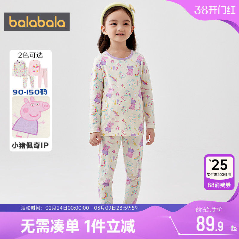 巴拉巴拉女童内衣套装宝宝保暖衣秋衣秋裤秋冬季新款儿童睡衣加厚
