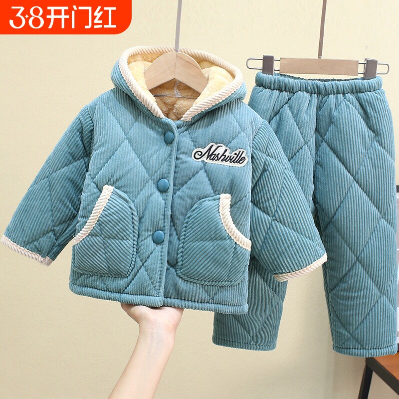 宝宝家居服套装冬季儿童睡衣加厚三层夹棉保暖秋冬款婴儿衣服冬装