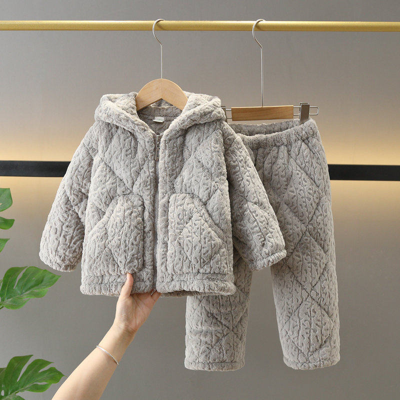 冬季儿童睡衣加厚法兰绒家居服套装男童小女孩三层夹棉加绒珊瑚绒
