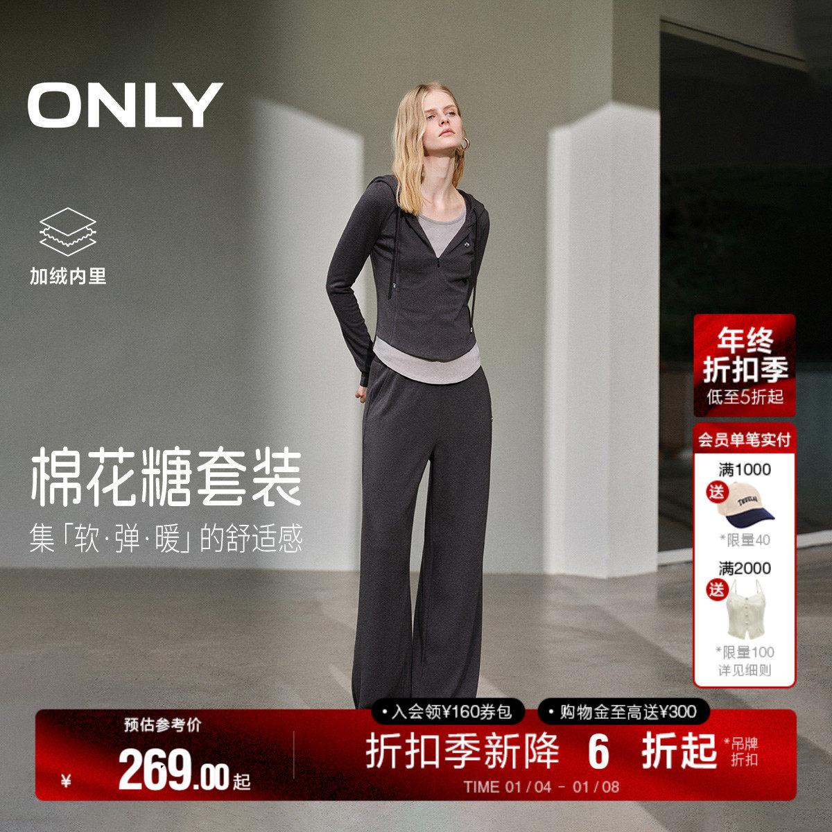 ONLY冬季新款纯色质感显瘦直筒运动卫衣/卫裤糯米休闲裤套装