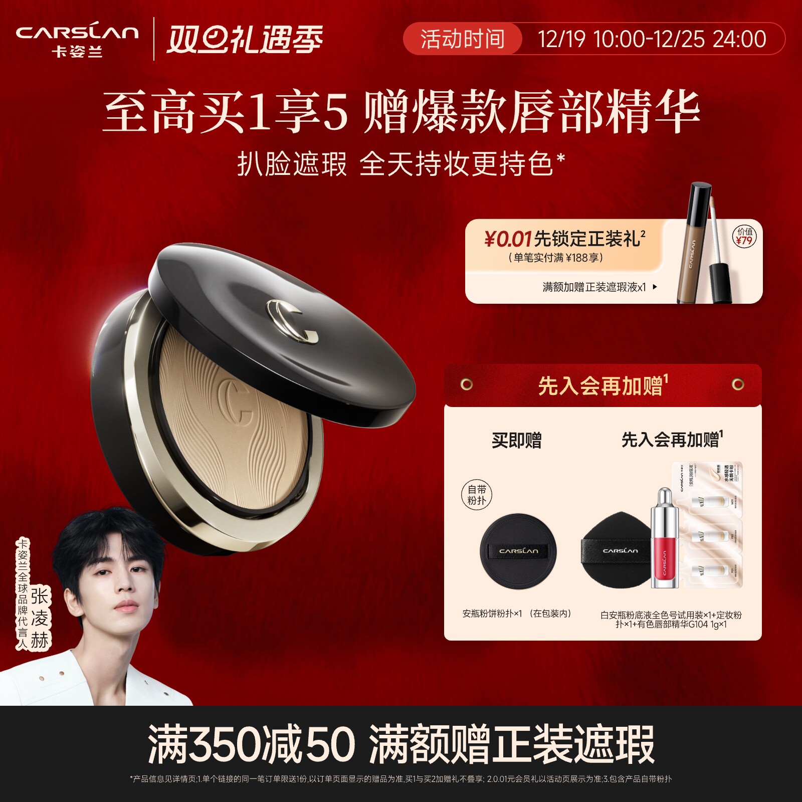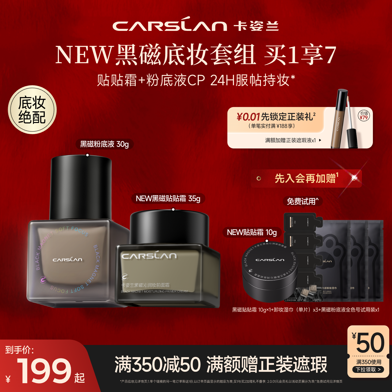 【直播间送正装】卡姿兰黑磁粉底液遮瑕持妆黑磁散粉黑磁粉饼定妆