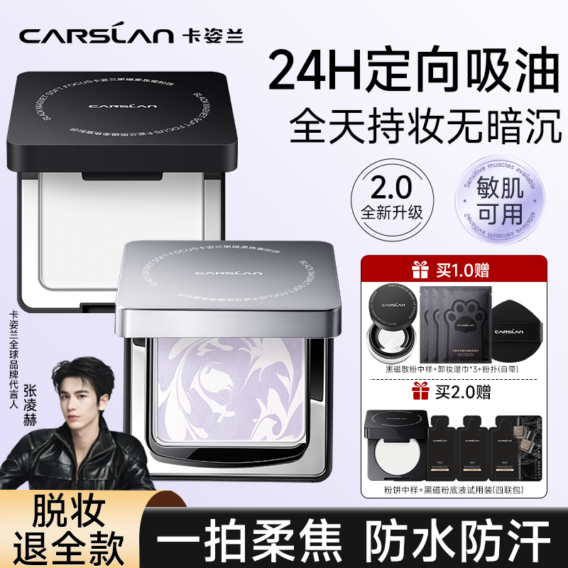 卡姿兰黑磁粉饼控油定妆持久大牌遮瑕官方正品干皮老牌国货非散粉