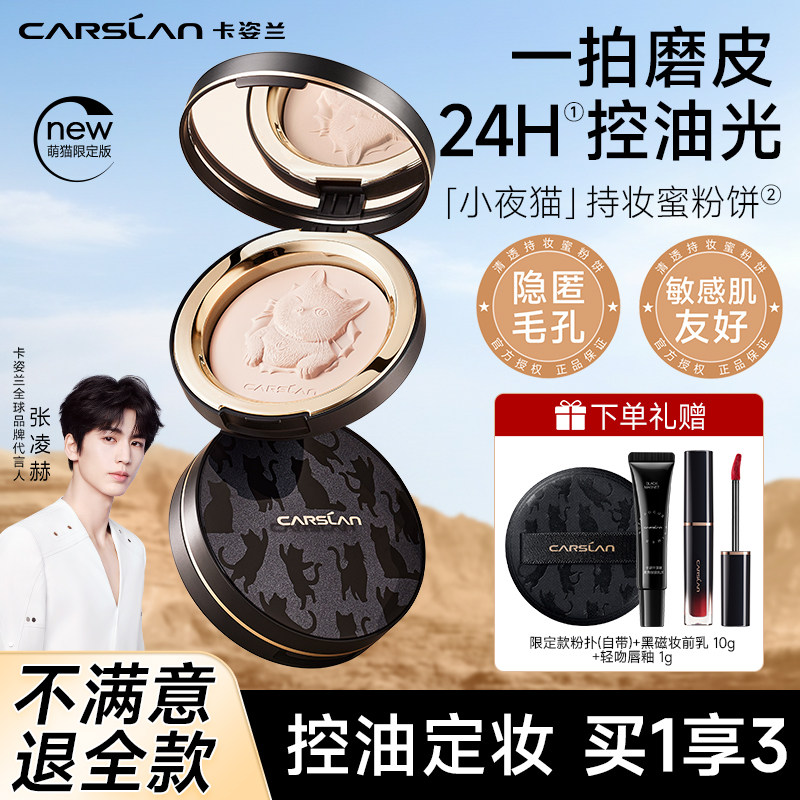 卡姿兰小夜猫粉饼控油定妆持久防水补妆遮瑕散粉干湿两用官方正品