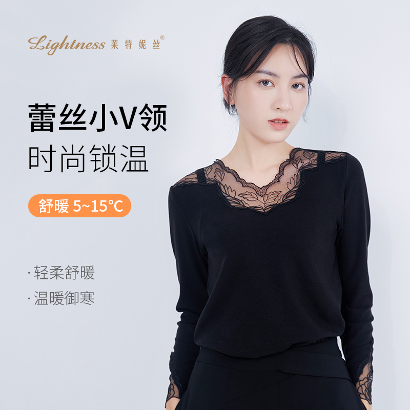 ALDOLA/雅黛俪V领性感蕾丝打底衫女内搭薄款修身显瘦保暖衣2025新