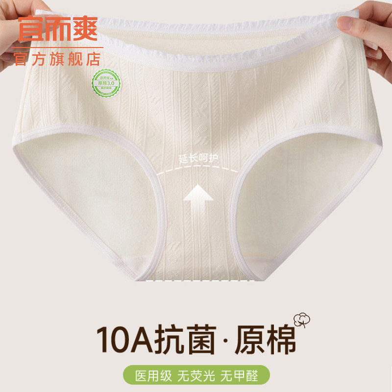 宜而爽纯棉内裤女医用级100%全棉加长档2025新款中腰女生三角裤头