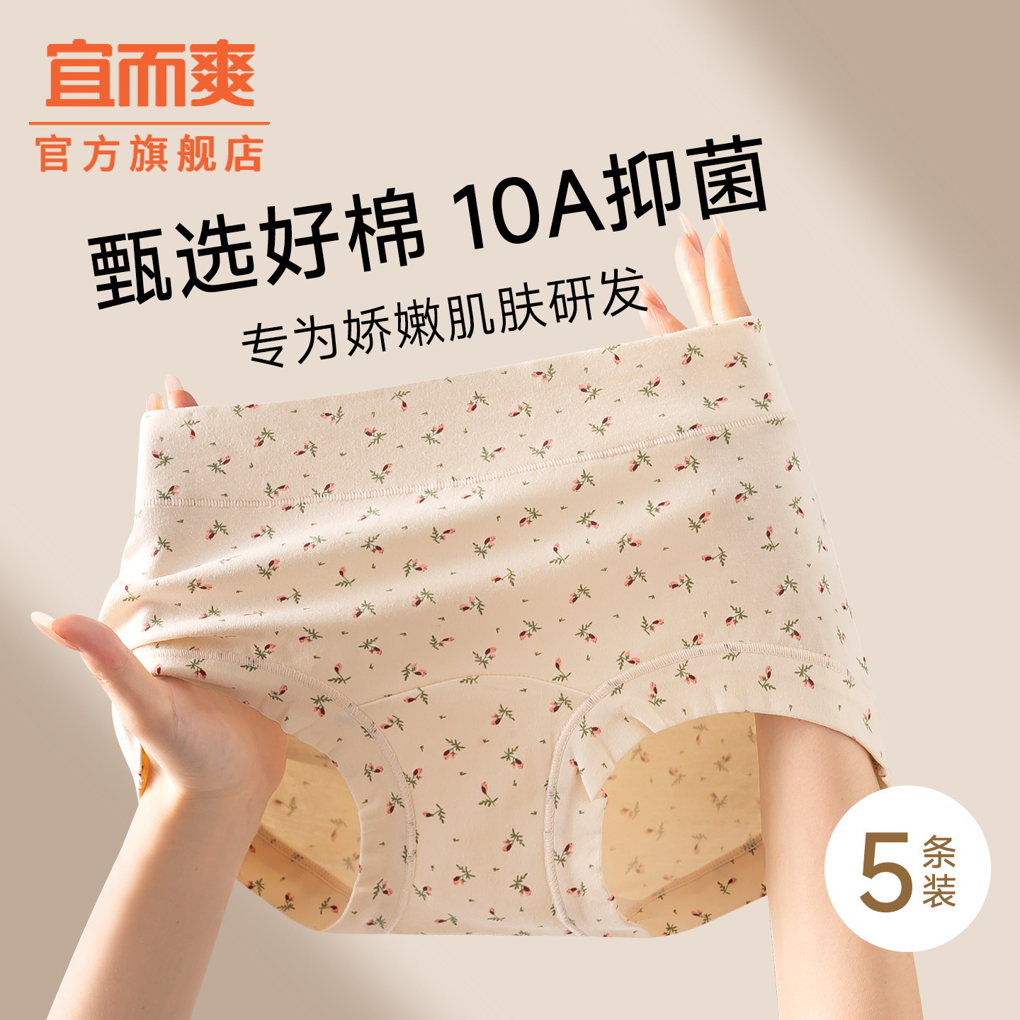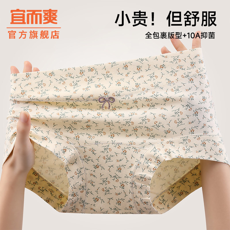 宜而爽纯棉内裤女10A抑菌档中腰包臀透气无痕碎花女生四角短裤头