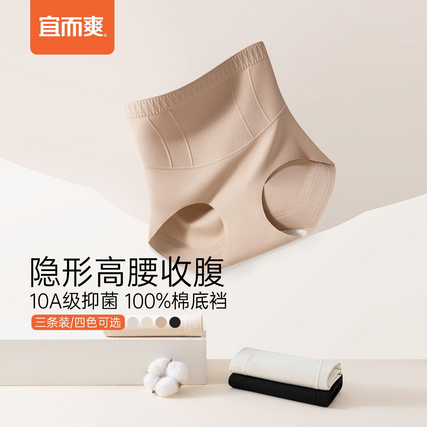 宜而爽高腰收腹内裤女士25新款收小肚子无痕提臀裤10A抗菌三角裤