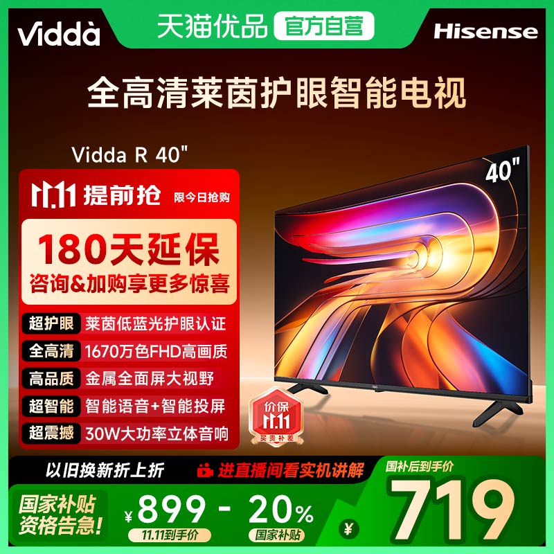Vidda 海信电视R40 40英寸全面屏液晶平板家用电视机以旧换新3891