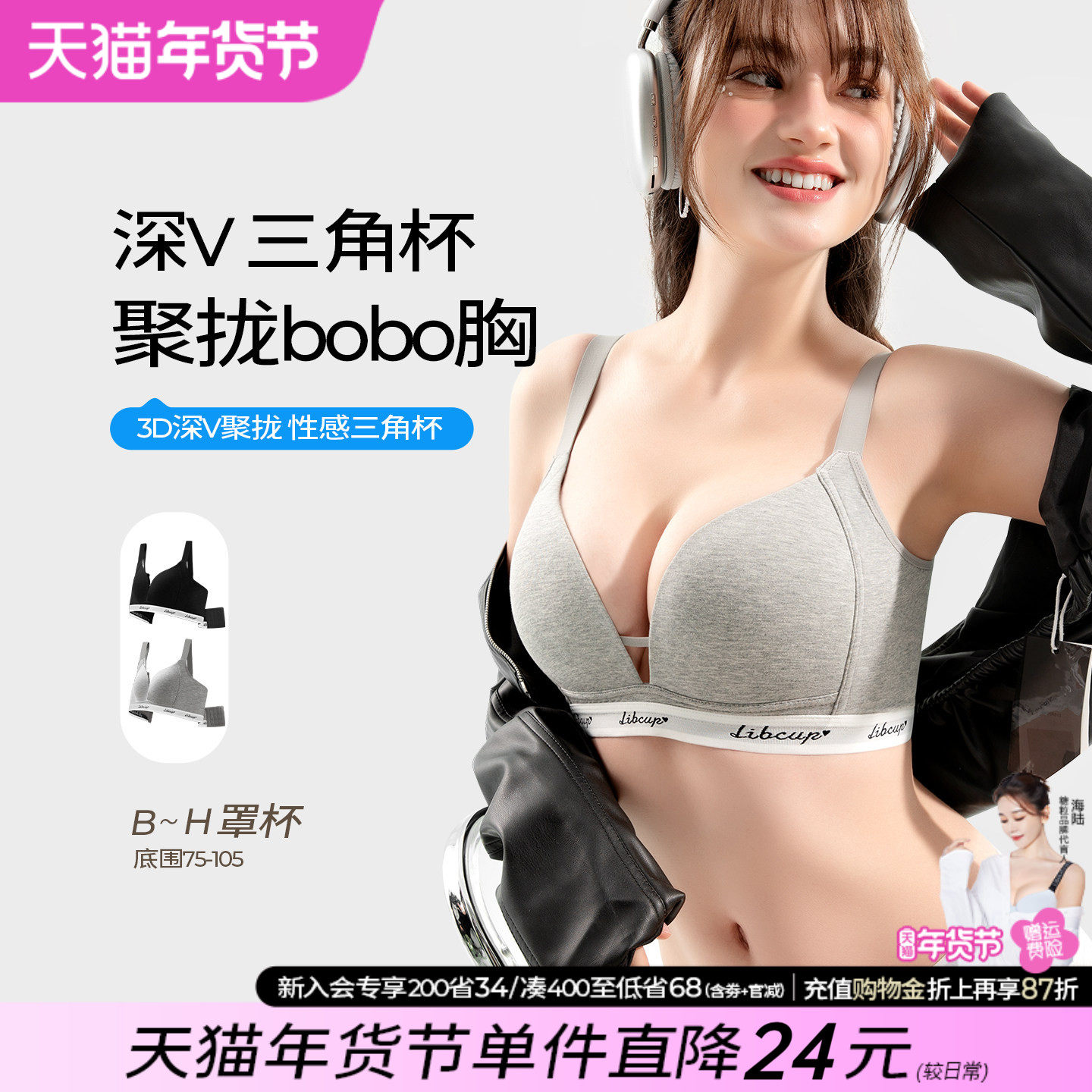 claesens法式三角杯无痕薄款无钢圈深V小胸聚拢文胸细肩带内衣女