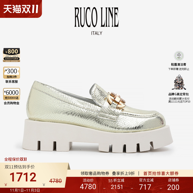 Ruco Line如卡莱蛇纹漆皮单鞋女士新款厚底中跟休闲鞋5cm增高鞋