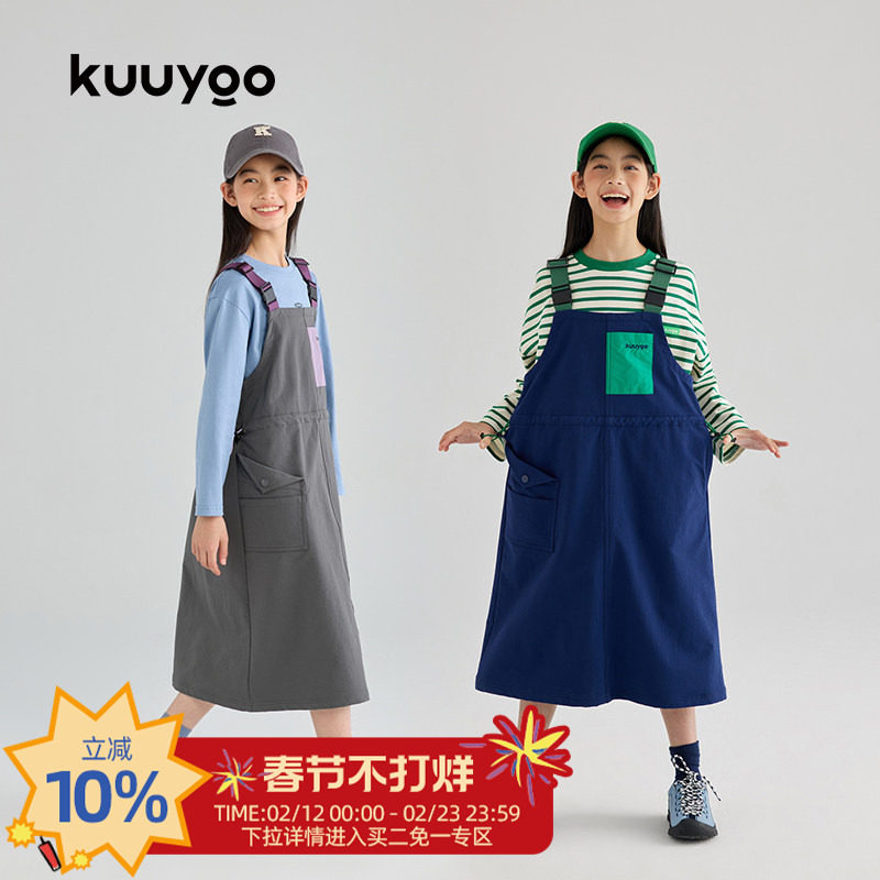 KUUYOO撞色户外机能风背带裙女童长裙春季中大童新款连衣裙