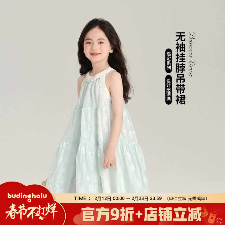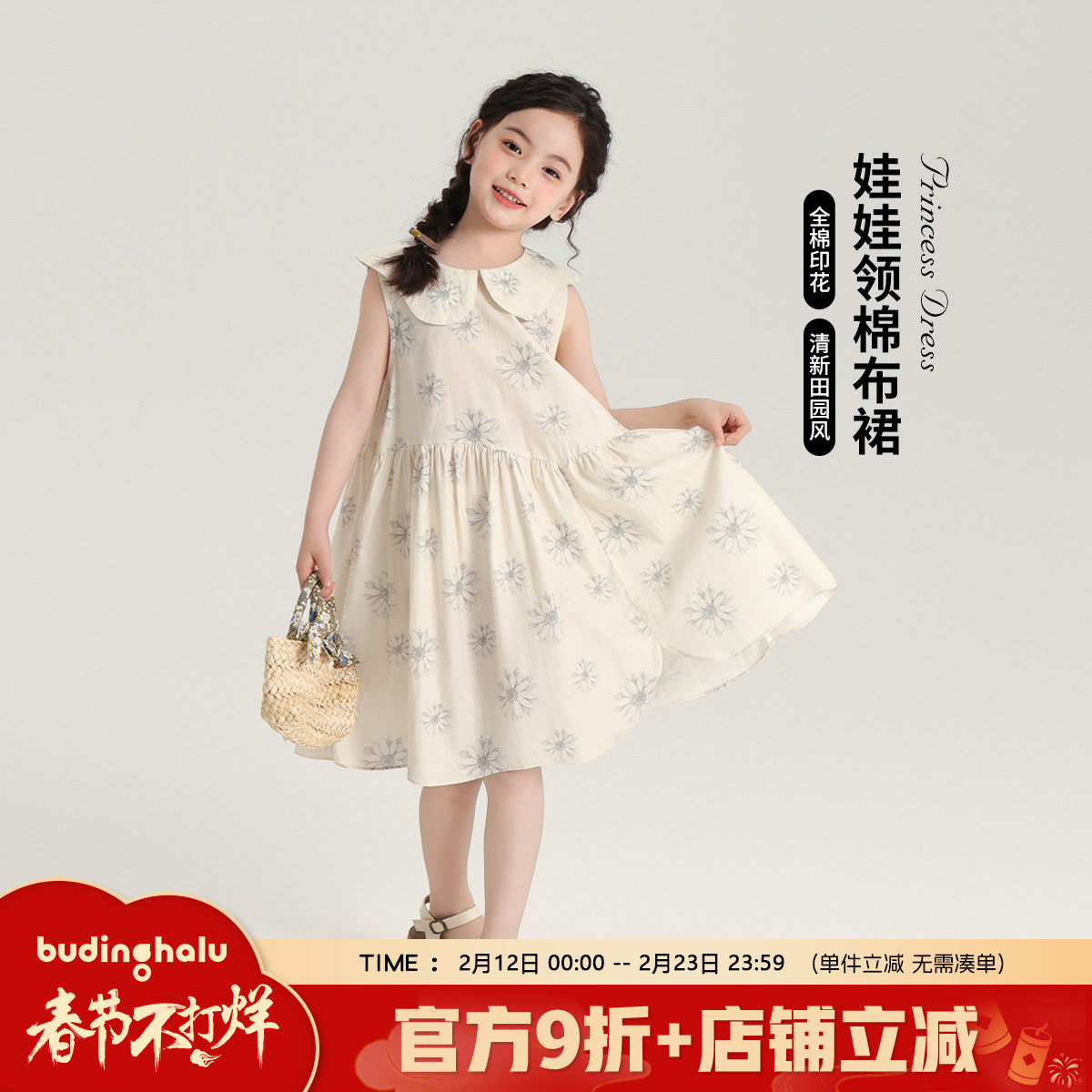 布丁哈鲁童装夏装女童长裙2026夏季新款儿童娃娃领无袖连衣裙