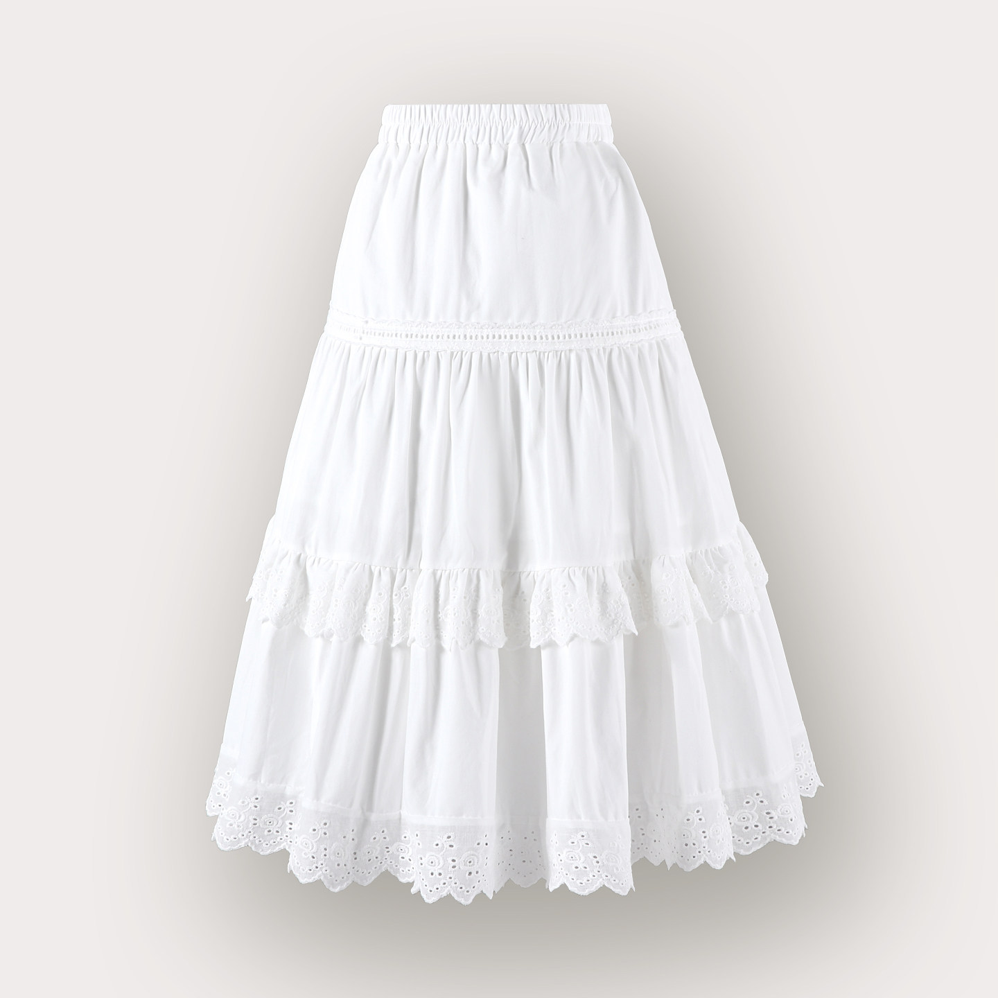 女童长裙2026春夏韩版白色半身长款高腰蛋糕裙女孩蕾丝花边公主裙