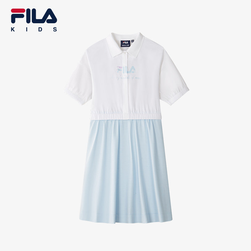 FILA斐乐儿童童装裙子2024春新款中大童女童长裙短袖梭织连衣裙潮