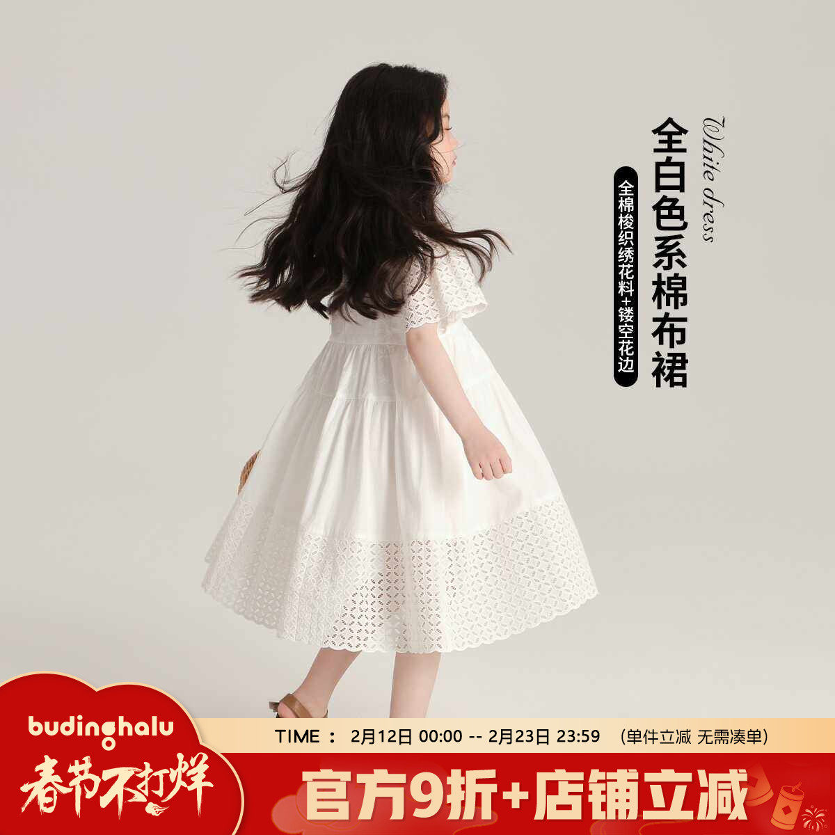 布丁哈鲁童装夏装女童长裙2026夏季新款儿童公主风纯色纯棉连衣裙