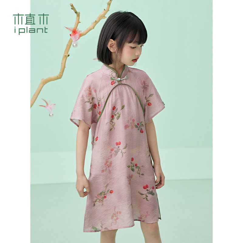 【新中式东方绮梦】植木立领女童长裙2025夏装新款儿童旗袍裙童装