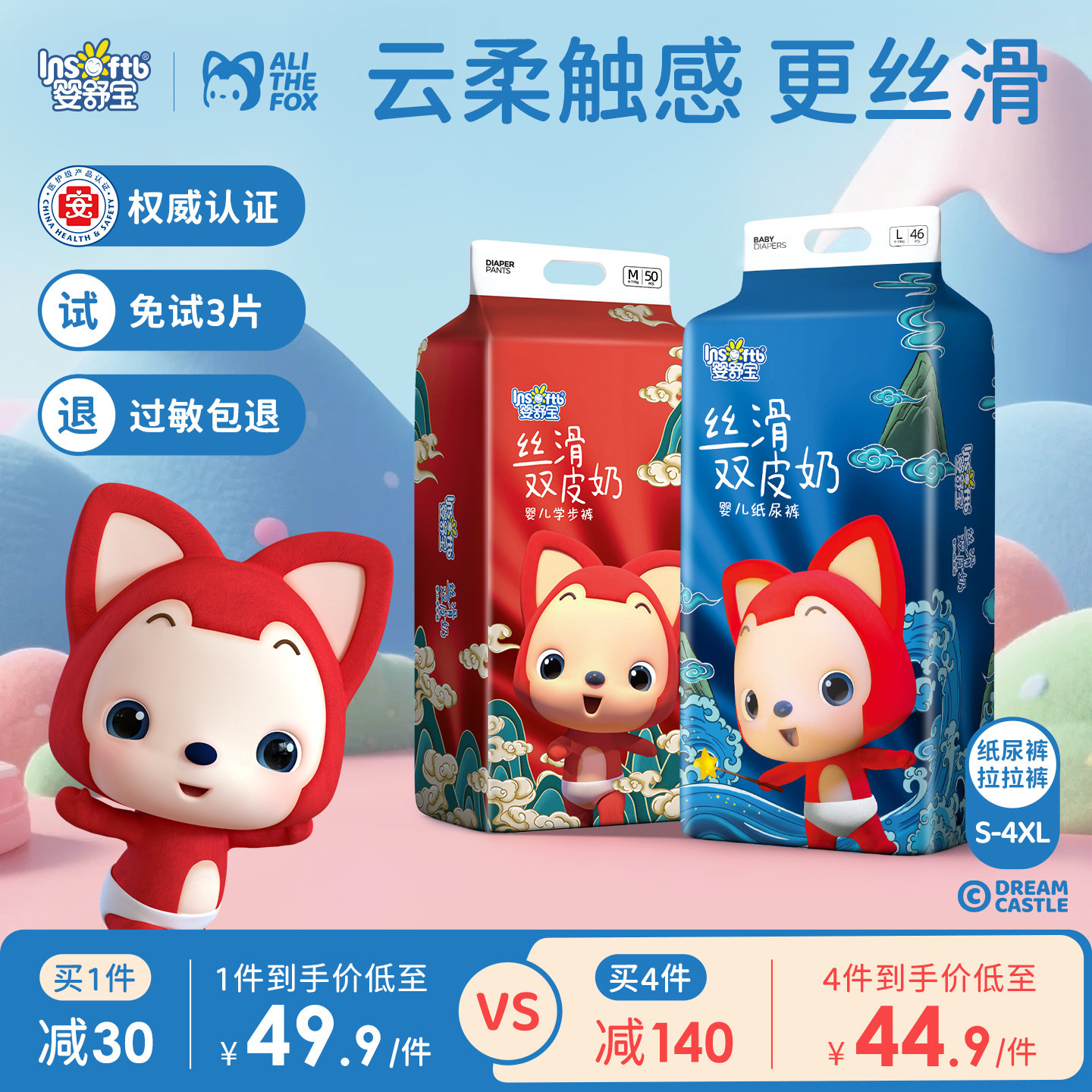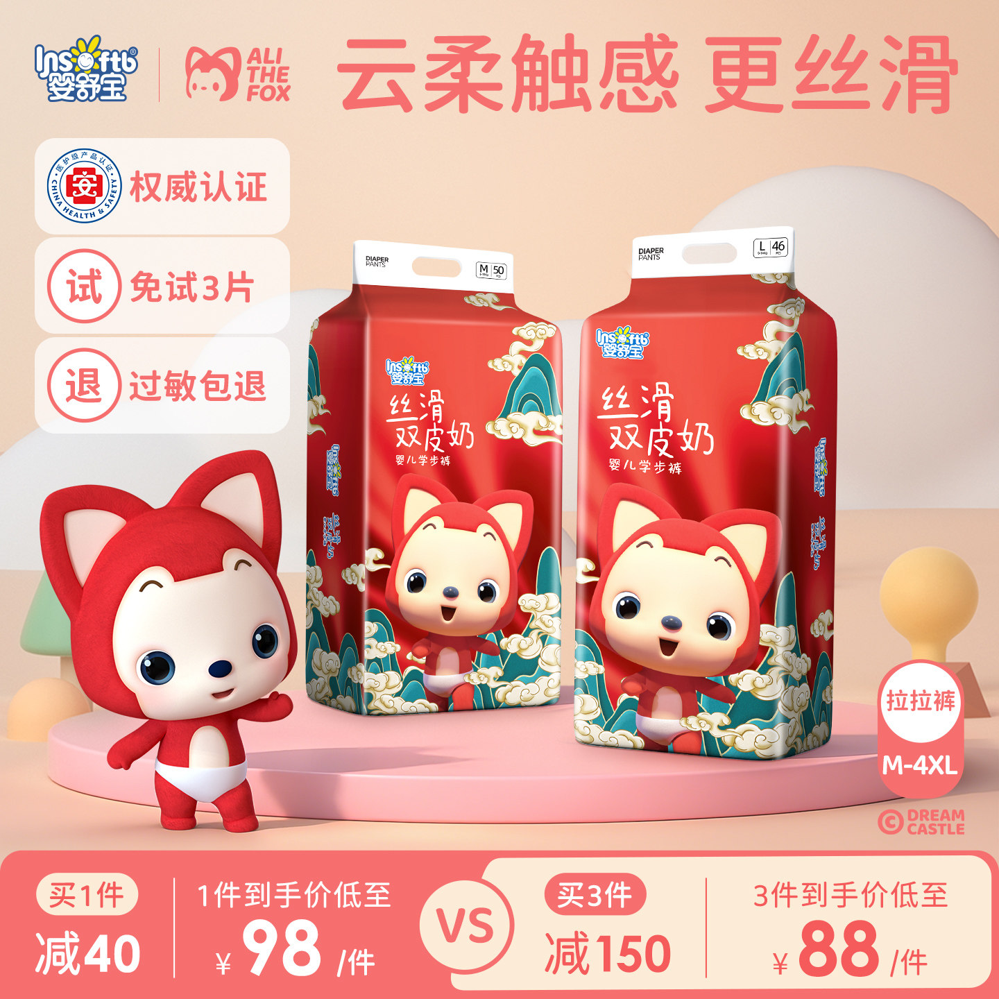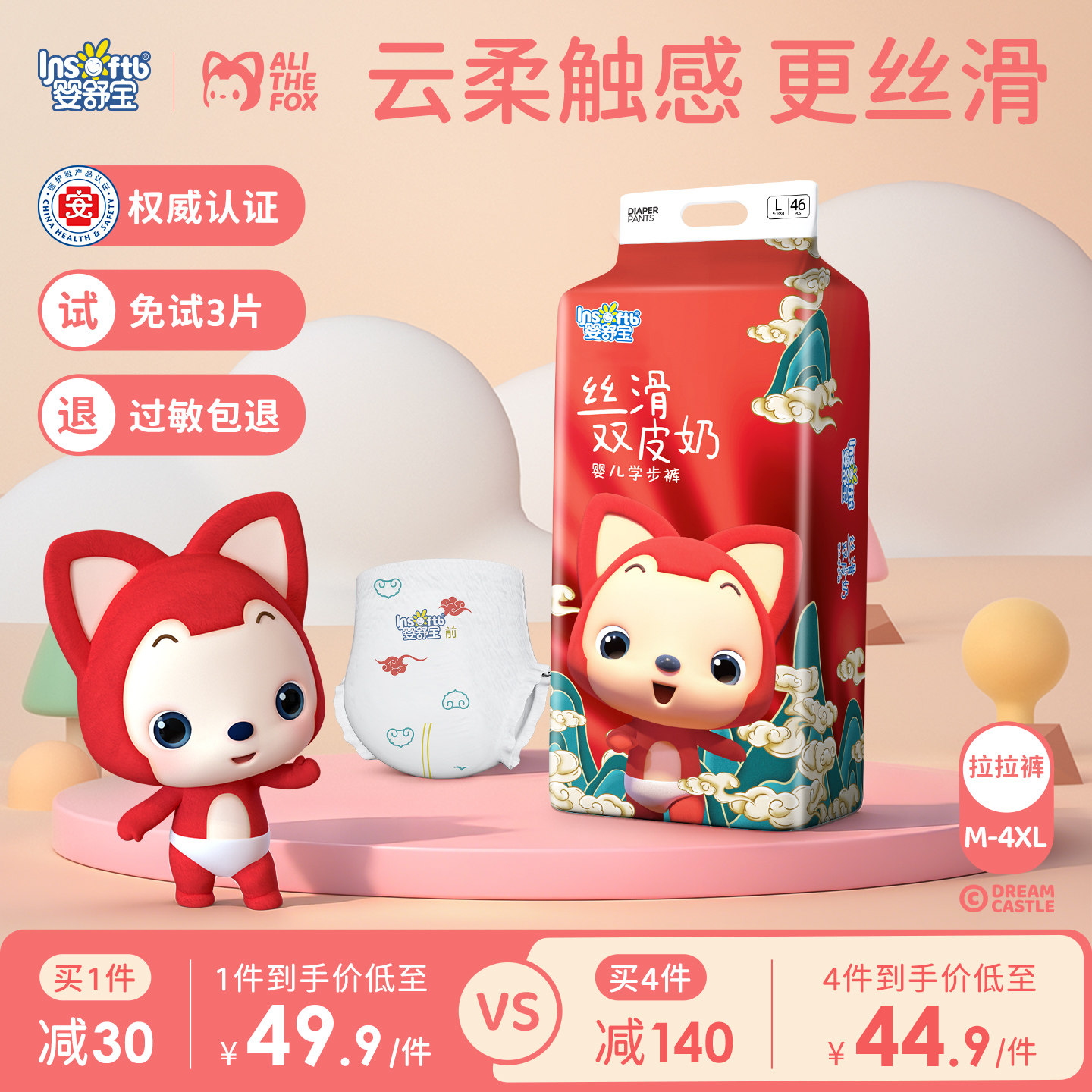 婴舒宝阿狸双皮奶婴儿拉拉裤宝宝xl纸尿裤m学步裤尿不湿4片试用装