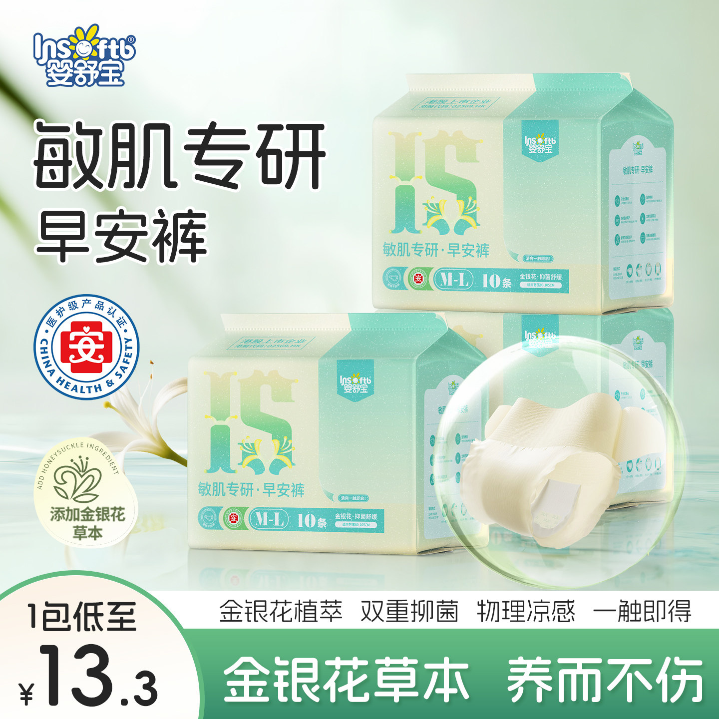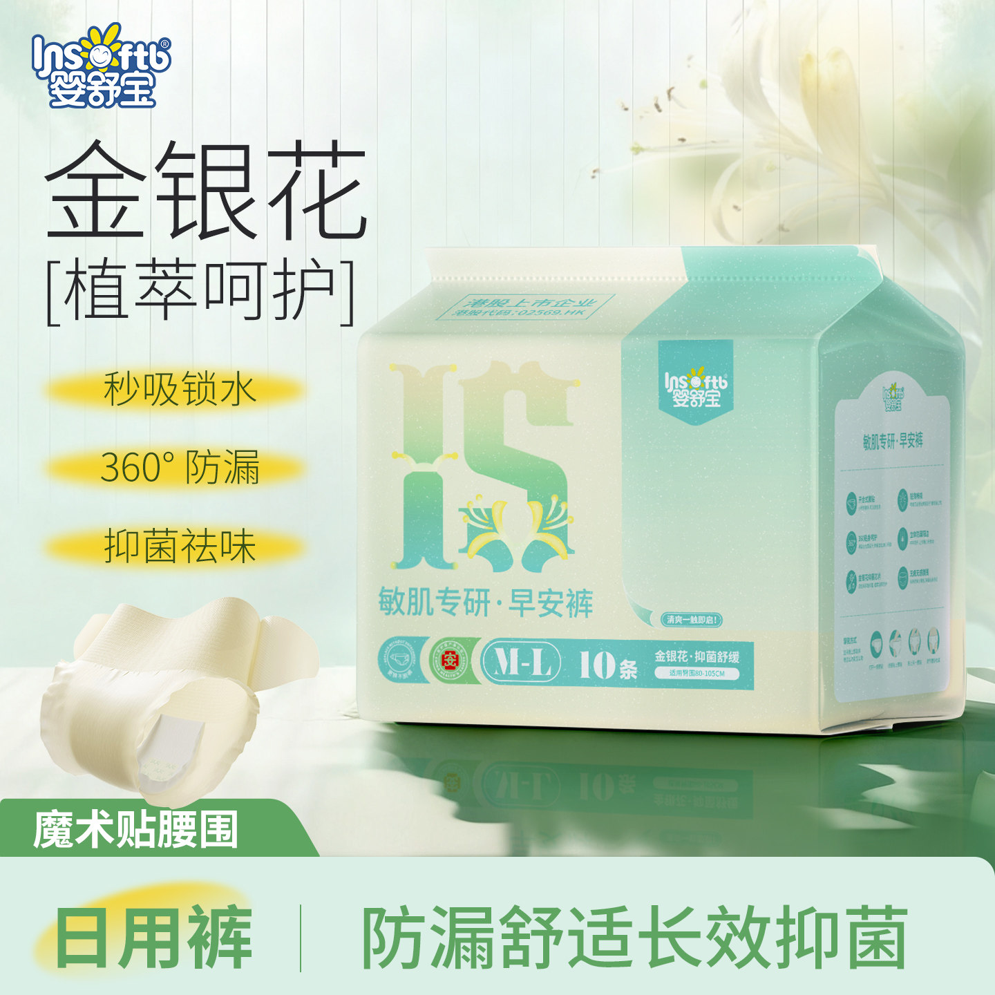 婴舒宝金银花早安裤抑菌舒缓敏感肌专研零添加超薄10条装经期可用